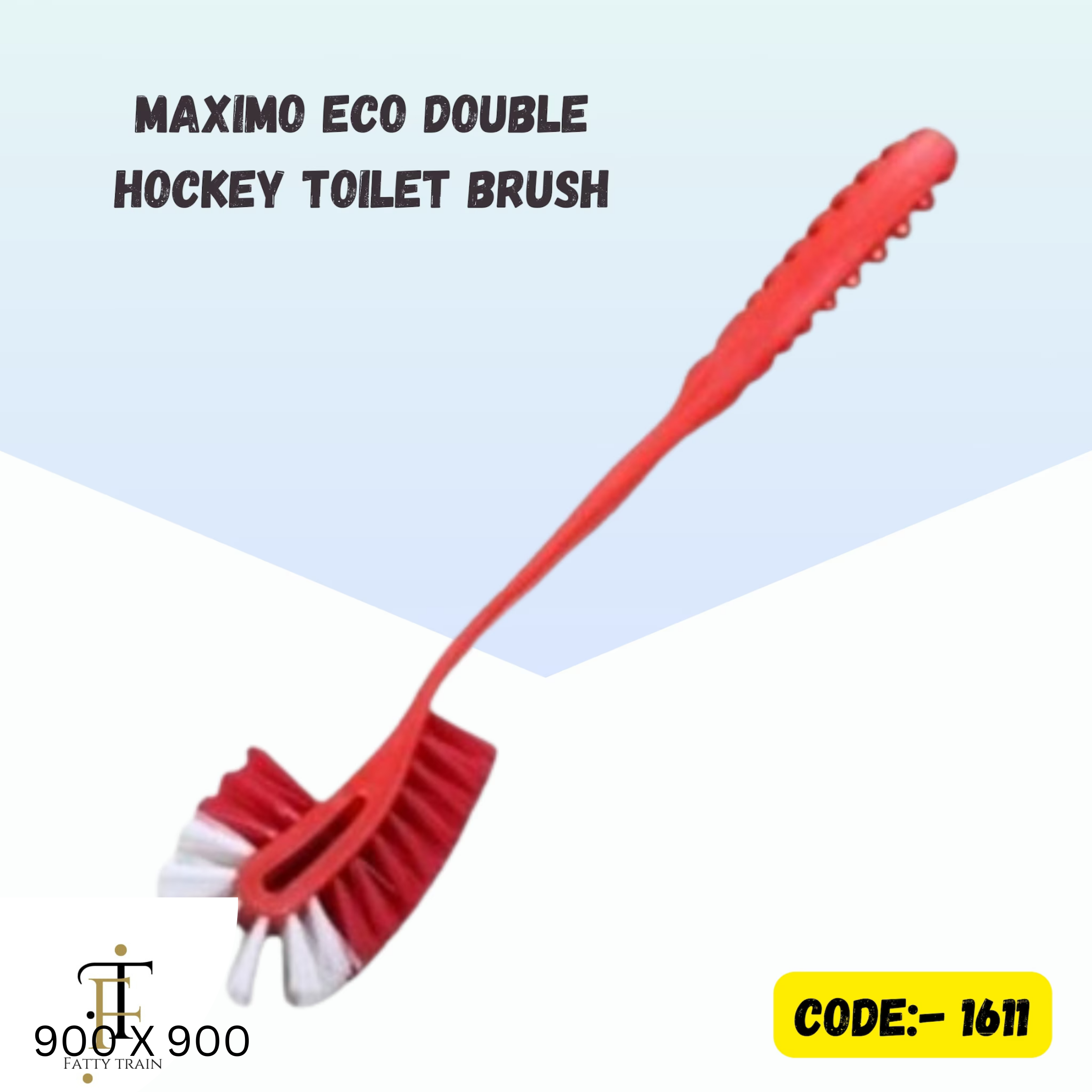 The Maximo Eco Double Hockey Toilet Brush is a cleaning tool designed to effectively clean toilet bowls, featuring a double-sided bristle arrangement for comprehensive coverage. Typically, it has a 12-inch handle and weighs approximately 100 grams. The brush is available in various colors, including red, white, green, and yellow.