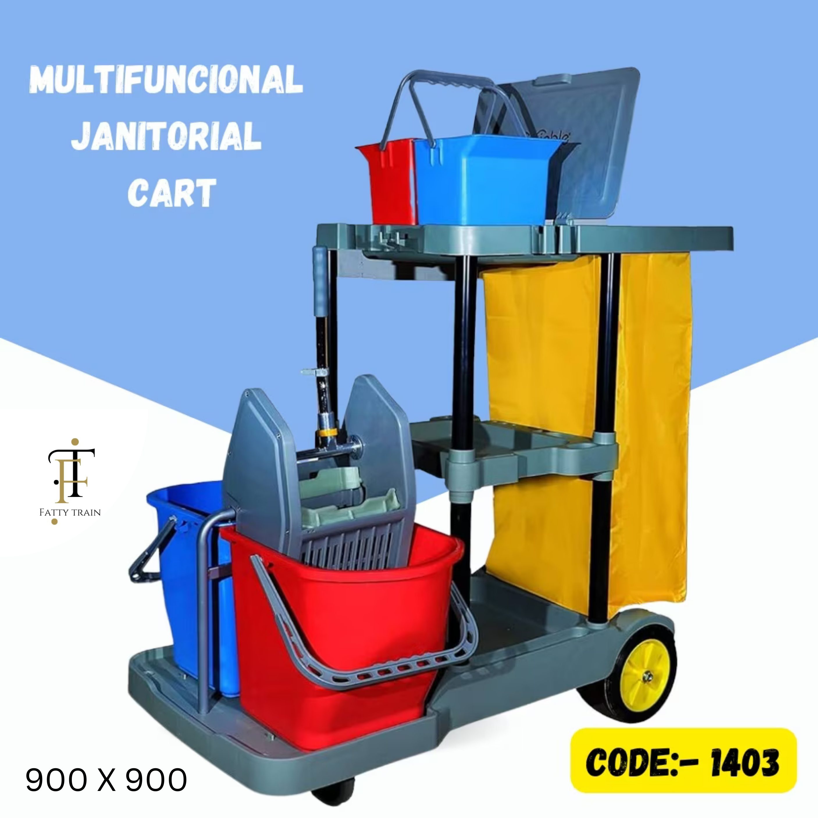 • This versatile janitorial cart features five durable plastic shelves, designed for efficient organization and transport of cleaning supplies. Its robust construction ensures longevity, while the multifunctional design allows for easy maneuverability in various environments, making it ideal for commercial and institutional cleaning tasks.